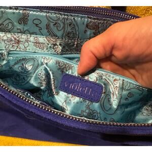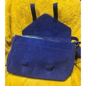 Violetta Italian Suede Crossbody Purse Messenger Blue Fold Over Adjustable Strap