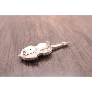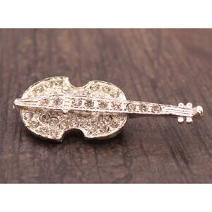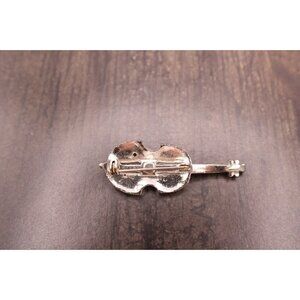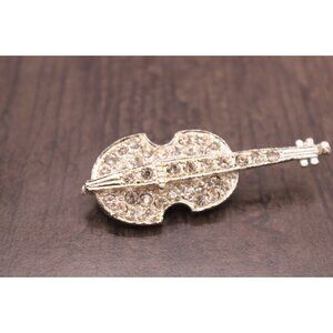 Violin Pin Brooch Rhinestones Lapel Hat Musical Instrument Jewelry Musician Vintage