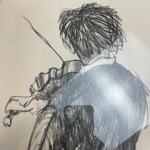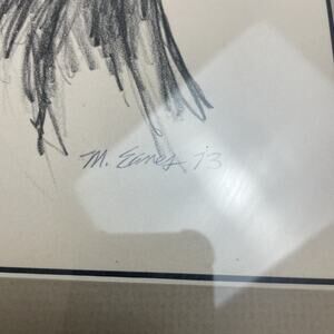 Violinist Musician Pencil Drawing Artist Signed Mark Eanes 1973 Wood Frame 17x21