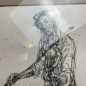 Violinist Musician Pencil Drawing Artist Signed Mark Eanes 1979 Wood Frame 17x21
