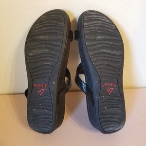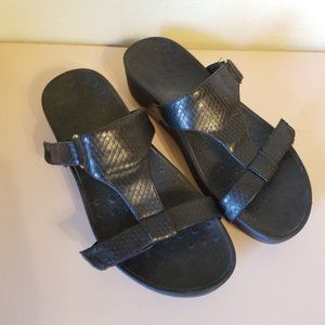 Vionic 10 Black Comfort Shoes Sandals Adjustable ELLIE T Strap Embossed Animal P