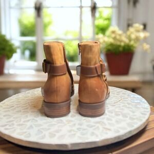 Vionic $190 Rhiannon Equestrian Ankle Boots Cognac Nubuck Leather Buckle Detail