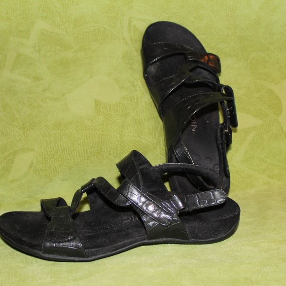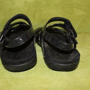 Black, adjustable, leather uppers, excellent condition, size 9, barely worn! Podiatrist-designed, biomechanical orthotic footbed with Orthaheel® technology and a deep heel cup helps stabilize, support, and realign feet back to their natural position while wearing