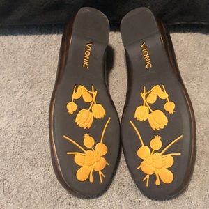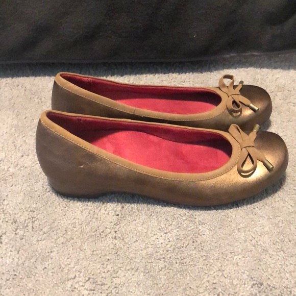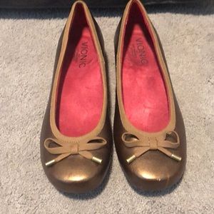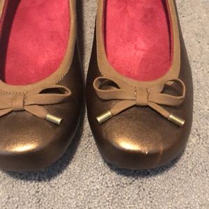 Vionic flat. Bronze color. Only worn once with socks. Some blemishes on left shoe as shown in pictures. Size 6.5