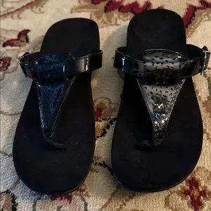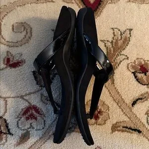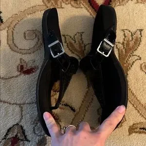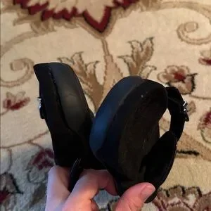 Black sandals with fancy front design. New without tags. I like to buy shoes that I never end up wearing. I thought these were so cute but I never reach for them so I don’t want them taking up space anymore.