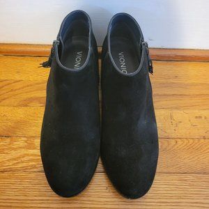 Vionic 9.5 SERENA Black Suede Leather Booties Ankle Boots Side Zip Tassel