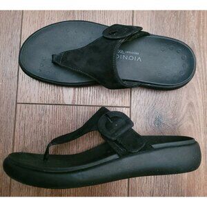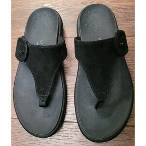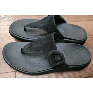 Vionic Activate Rx Toe Post Sandals Womens 7.5 Black Suede Flip Flop Excellent