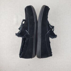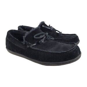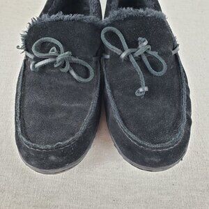 Vionic black suede 566 Adler faux fur shearling lined moccasin slipper shoes mens 9.5