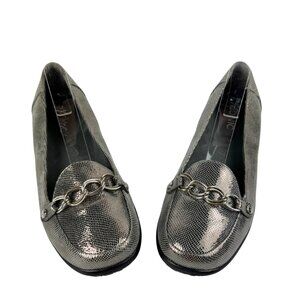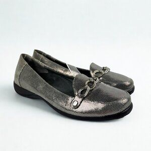 Style Tags: #VionicShoes, #AldaLoafers, #MetallicFlats, #SilverShoes, #OrthoticSupport, #ComfortShoes, #WorkStyle, #TravelShoes, #WomensFlats, #Size[Insert Size]Shoes, #SlipOnLoafers, #StylishComfort, #PoshFinds, #PrelovedFashion