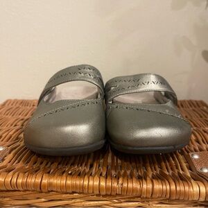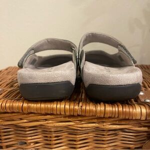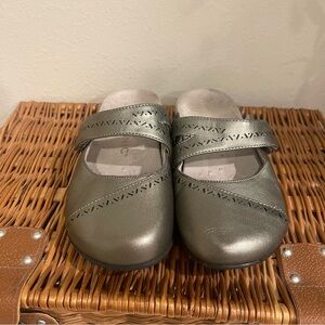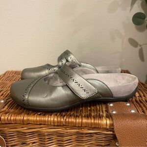 Vionic Allegra Women US 6 Metallic Leather Comfort Loafer Mules Hook Loop Shoe