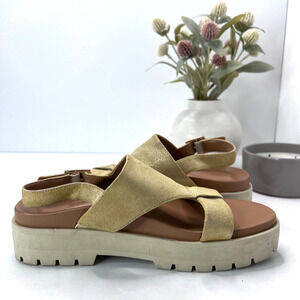 Vionic Alondra Lug T-Strap Comfort Sandal Gold Sling Back Buckle Women's 6