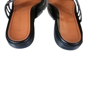 Vionic Alvana Black Women's Leather Geometic Cutout Thong Sandals Sz 8