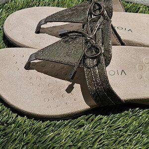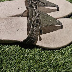 Vionic Amaya Snake Print Thong Sandals – Women’s 7 – Charcoal Metallic – New in