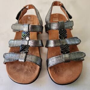 Vionic Amber Triple Strap Sandal Women's 8 WIDE Silver Leather Arch Support Shoe