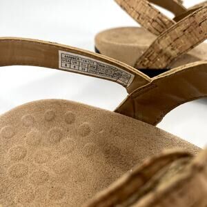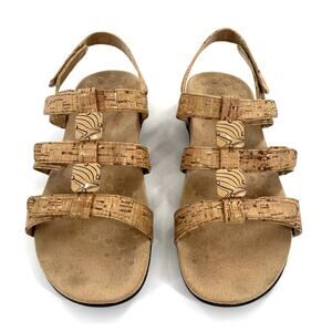Vionic Amber Womens Strappy Sandals Tan Gold Cork Slingback Sz 8
