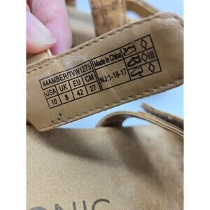 Vionic Amber-Tan Adjustable Sandals Cork Look, Gold Foil Accents Women's Size 10