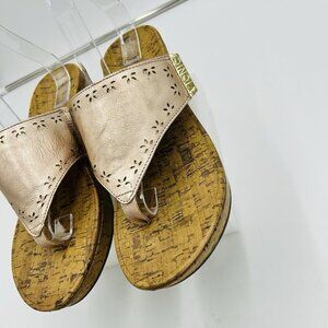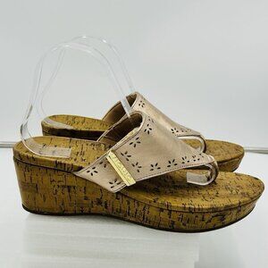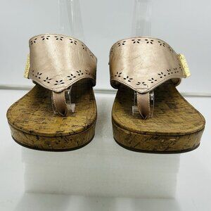 Vionic Anitra Sandals Women Size 9 Rose Gold Cork Wedge Thong Orthaheel