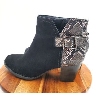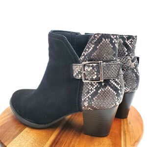 Vionic Ankle Boots Naomi Women’s 7 Black Suede Block Heeled Zip Booties Comfort