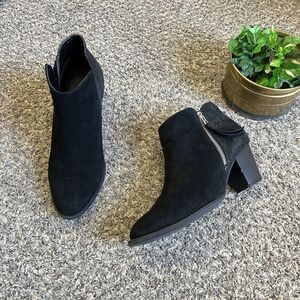 Vionic Anne Women's Black suede Leather Boots size 9 Block Heel Side Zip Classic