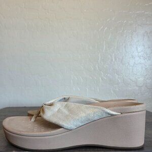 Vionic Arabella Metallic Sparkle Wedge Thong Sandals Champagne Size Women's 10 Comfort Orthotic Slip-On