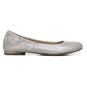 Vionic Ballet Flat Alexa Leather Lizard Aluminum Womens 7.5 Arch Support New