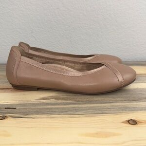 Vionic Caroll Ballet Flat, Tan Napa Leather, Soft Elastic Top Line with Delicate Stitching and Crossover Detail above the Toecap, Contoured Footbed, Deep Heel Cup for Stability, Size 6.5 Wide, Like new!