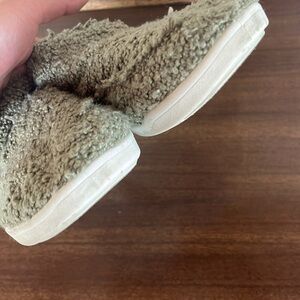 Vionic Beach Slip-On Shoes in green, size 6. These easygoing slip-ons combine casual style with Vionic’s trusted support and comfort. In great condition overall with plenty of wear left. There is some pilling/fuzziness on the heel area—see pictures for details. A cute, comfy pair perfect for everyday errands, travel, or laid-back weekends.