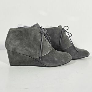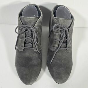 Vionic Becca Suede Ankle Bootie Women's Size 8 Gray Lace Up Wedge