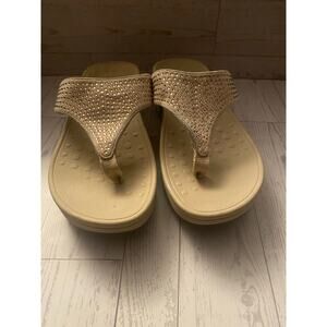 Vionic Beige Rhinestone Wedge Flip Flop Sandals Women’s Size 6 Orthotic Comfort