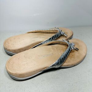 Vionic Bella Bow Silver Metallic Thong Orthotic Sandals Retail $90 Size 11