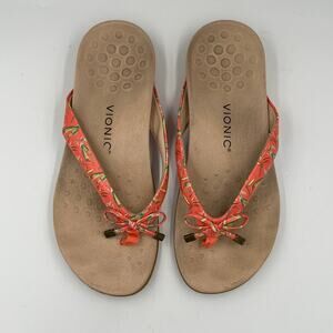 Vionic Women’s Bella II Papaya Coral Floral Flip-Flops Sandals