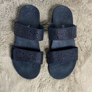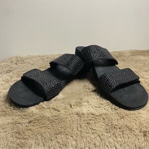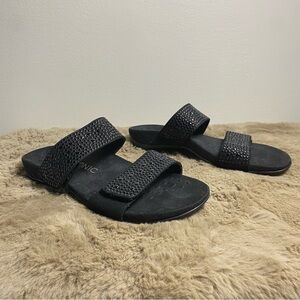 Vionic Black Beaded Slight-Wedge Slide Sandals Size 9
