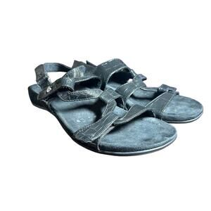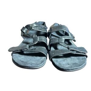 Vionic Black Crocodile embossed Print leather Adjustable Slip On Comfort Sandals Size 9
