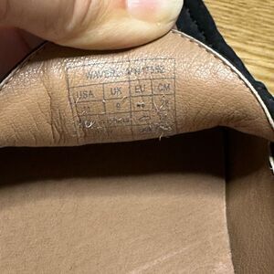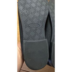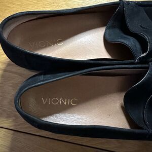 Elegant black loafers by Vionic. Sleek design with a comfortable fit. Perfect for everyday wear. The shoes are in very nice used condition and sad they do not fit .