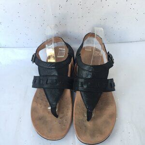 Vionic Black Lupe Leather Thong Ankle Strap Buckle Sandal - Size 10 Comfort