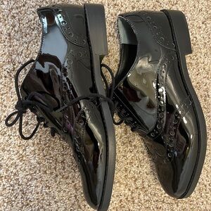 Vionic Black Oxford Shoes with Wingtip Brogue Design