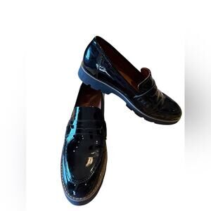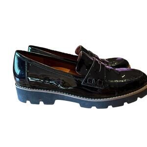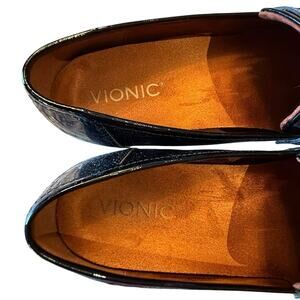 Vionic Black Slip-On Loafers in Women’s 9.5 in Black Patent Leather Lug Sole