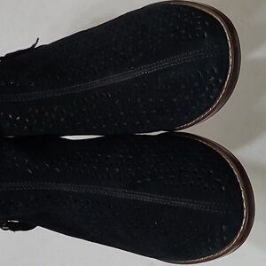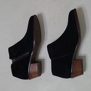 Vionic Black Suede Ankle Booties with Perforated Design size 8.