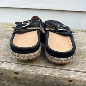 Vionic Black Suede Leather Glow Gia Slide Espadrille Sandal jute trim Size 7