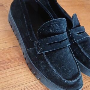 Elegant black suede loafers with a sleek design. Perfect for any occasion. They are very flexible. size 12
