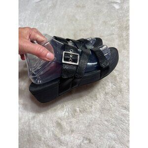 Vionic Black Womens Sandals Size 7 With Buckle Strap & Textured Design