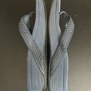 Vionic Blue Kehoe Platform Wedge Heel Gold Studded Flip Flops Women's size 9