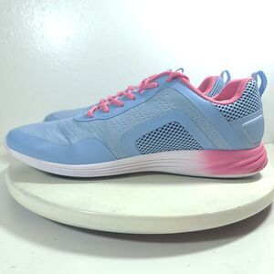 The Vionic Bluebell JoJo Ombre Lace-Up Sneakers in size 12 are designed for comfort and support with a focus on arch support. They feature a low top design, lace-up closure, and a breathable mesh lining. The stylish ombre pattern in bluebell and pink accents adds a fun character to the shoes, making them suitable for activewear, casual outings, and workwear. The Vionic brand ensures quality and durability, while the cushioned insole and standard shoe width provide a comfortable and supportive fit for walking activities.