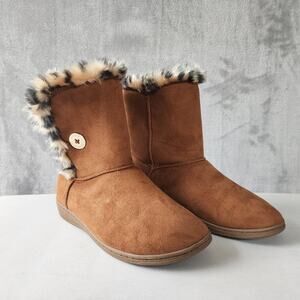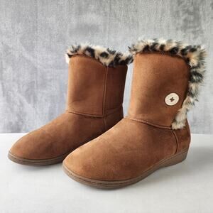 Vionic Boots Womens 8 Cheasnut Fairfax Faux Fur Lined Winter Leopard Slipper