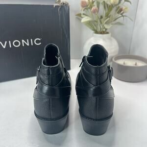 Vionic Farrah Leather Block Heel Side Zip Boot Black