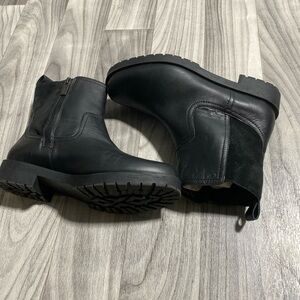Pre-owned Vionic women’s ankle boots in excellent condition. Crafted with genuine black leather and waterproof construction to keep feet dry in all weather. Features a convenient side zipper for easy on/off and Vionic’s signature orthotic comfort footbed for superior arch support. The rubber outsole ensures durability and slip resistance, while the low block heel provides stability and all-day comfort. Details: • Brand: Vionic • Style: Waterproof Ankle Boots • Size: Women’s 8 • Color: Black • Upper Material: Leather • Sole: Rubber outsole – slip-resistant & durable • Heel Style: Low Block Heel • Closure: Side Zip • Condition: Pre-owned, excellent condition (see photos) • Features: Waterproof, Orthopedic Comfort Technology, Everyday Wear