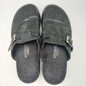 Vionic Calgary Clogs Mules Women's 9 Snake Print Buckle Orthopedic Comfort