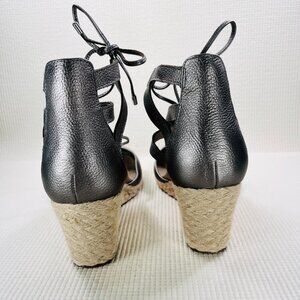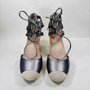 Vionic Calypso Espadrille Wedge Sandals Womens 10 Pewter Metallic Orthotic Shoe