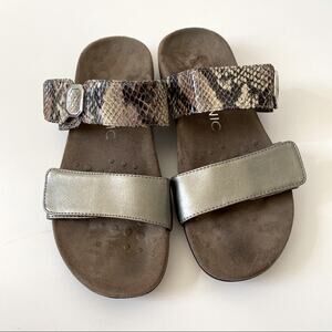 Vionic Camila Flat Leather Snake Silver Sandal size 7