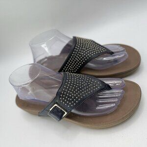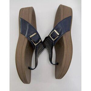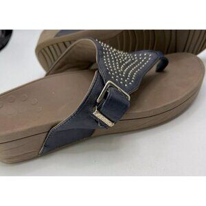 Vionic Capitola Sandals Comfort Shoes Studded Thongs Navy Platform See Measurem